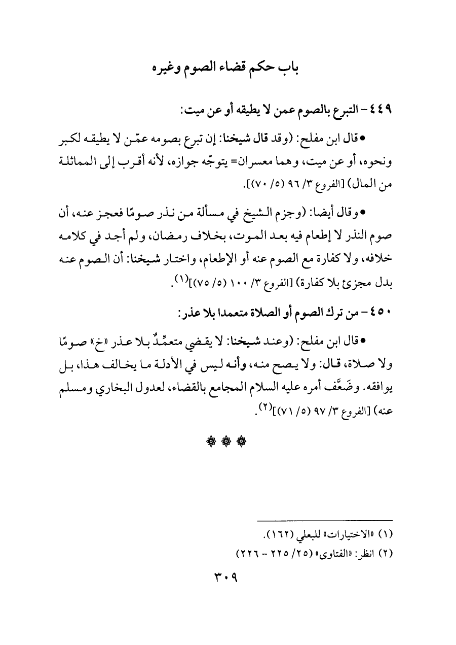 ٤٤٩ - التبرع بالصوم عمن لا يطيقه أو عن ميت: