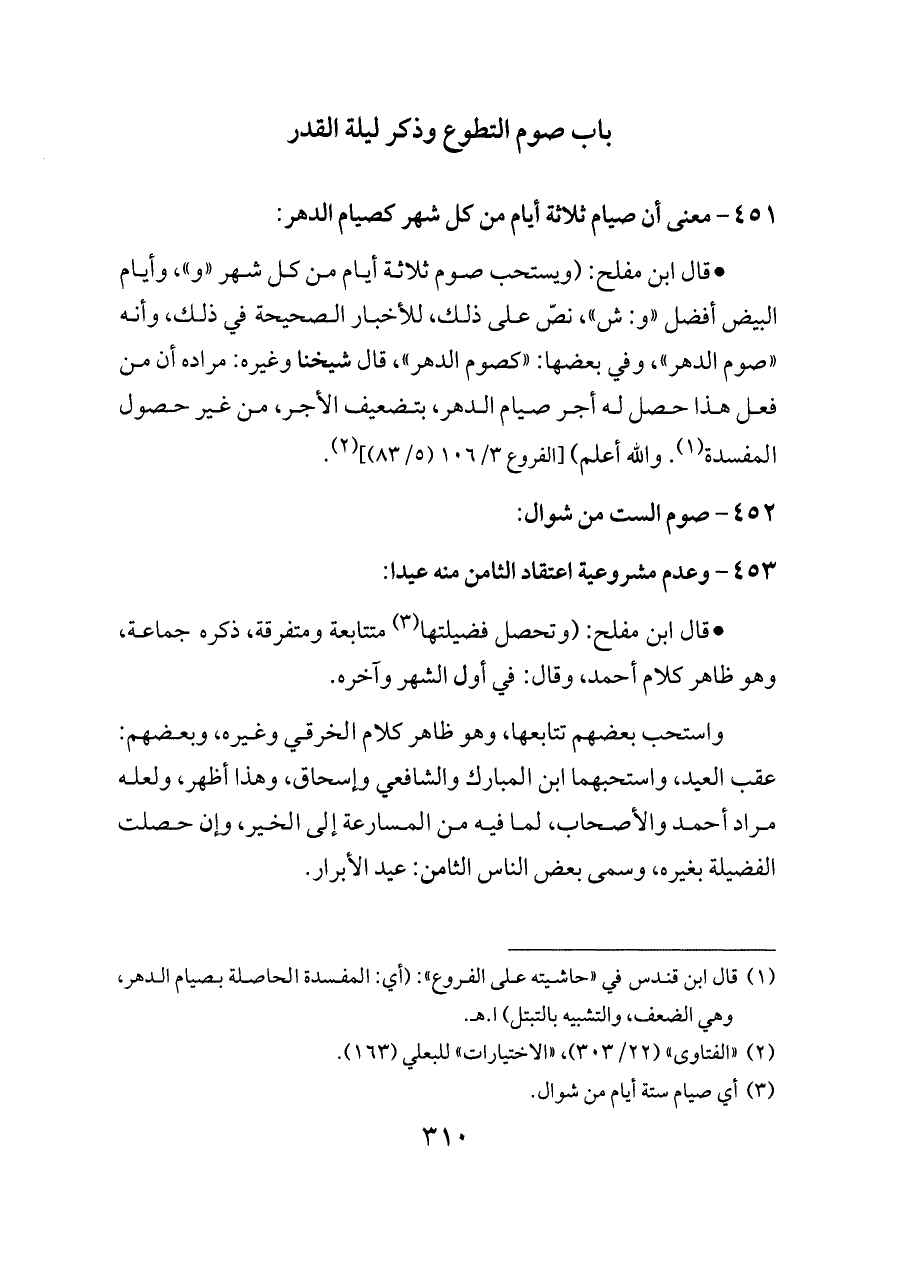 (¬١) قال ابن قندس في «حاشيته على الفروع»: (أي: المفسدة الحاصلة بصيام الدهر، وهي الضعف، والتشبيه بالتبتل) ا. هـ.