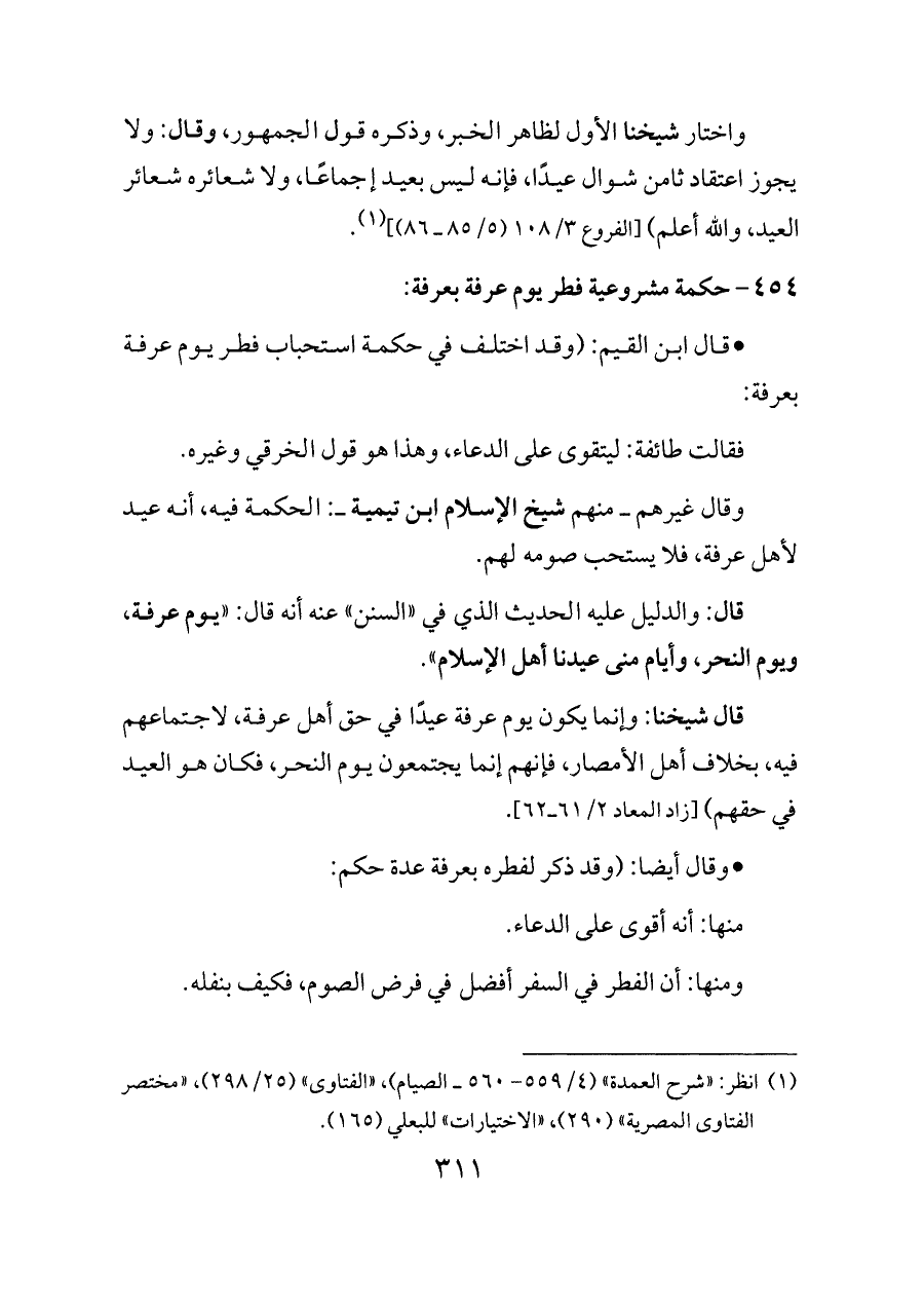 ٤٥٤ - حكمة مشروعية فطر يوم عرفة بعرفة: