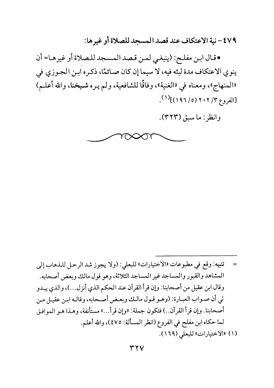 ٤٧٩ - نية الاعتكاف عند قصد المسجد للصلاة أو غيرها: