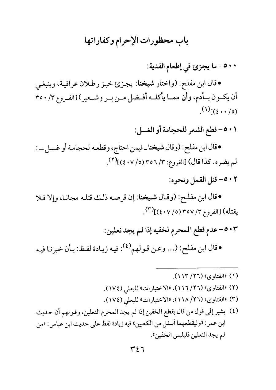 ٥٠٣ - عدم قطع المحرم لخفيه إذا لم يجد نعلين: