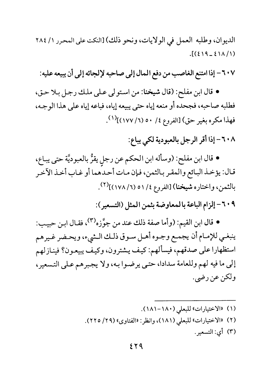 - قال ابن مفلح: (قال شيخنا: من استولى على ملك رجل بلا حق، فطلبه صاحبه، فجحده أو منعه إياه حتى يبيعه إياه، فباعه إياه على هذا الوجه، فهذا مكره بغير حق) [الفروع ٤/ ٥٠ (٦/ ١٧٧)] (¬١).