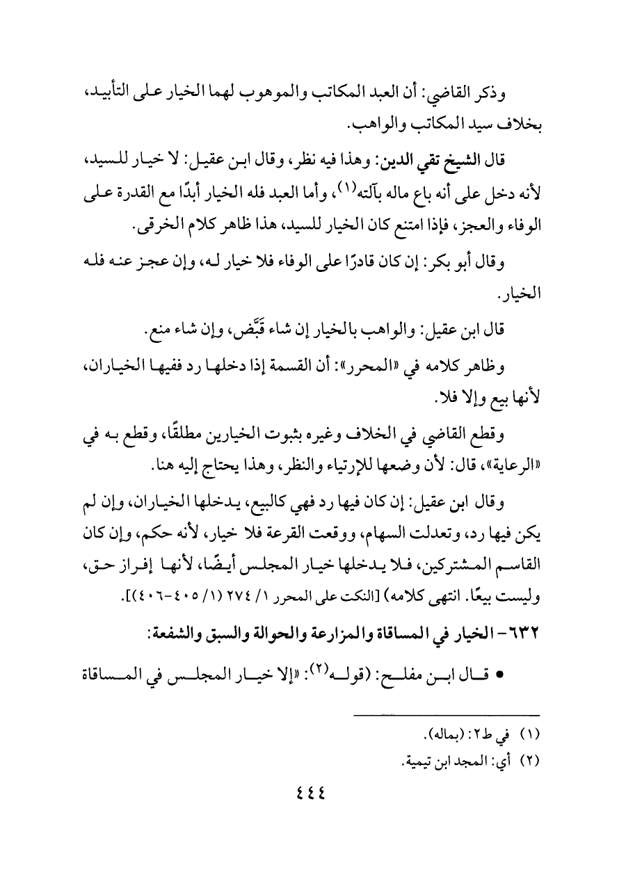 ٦٣٢ - الخيار في المساقاة والمزارعة والحوالة والسبق والشفعة: