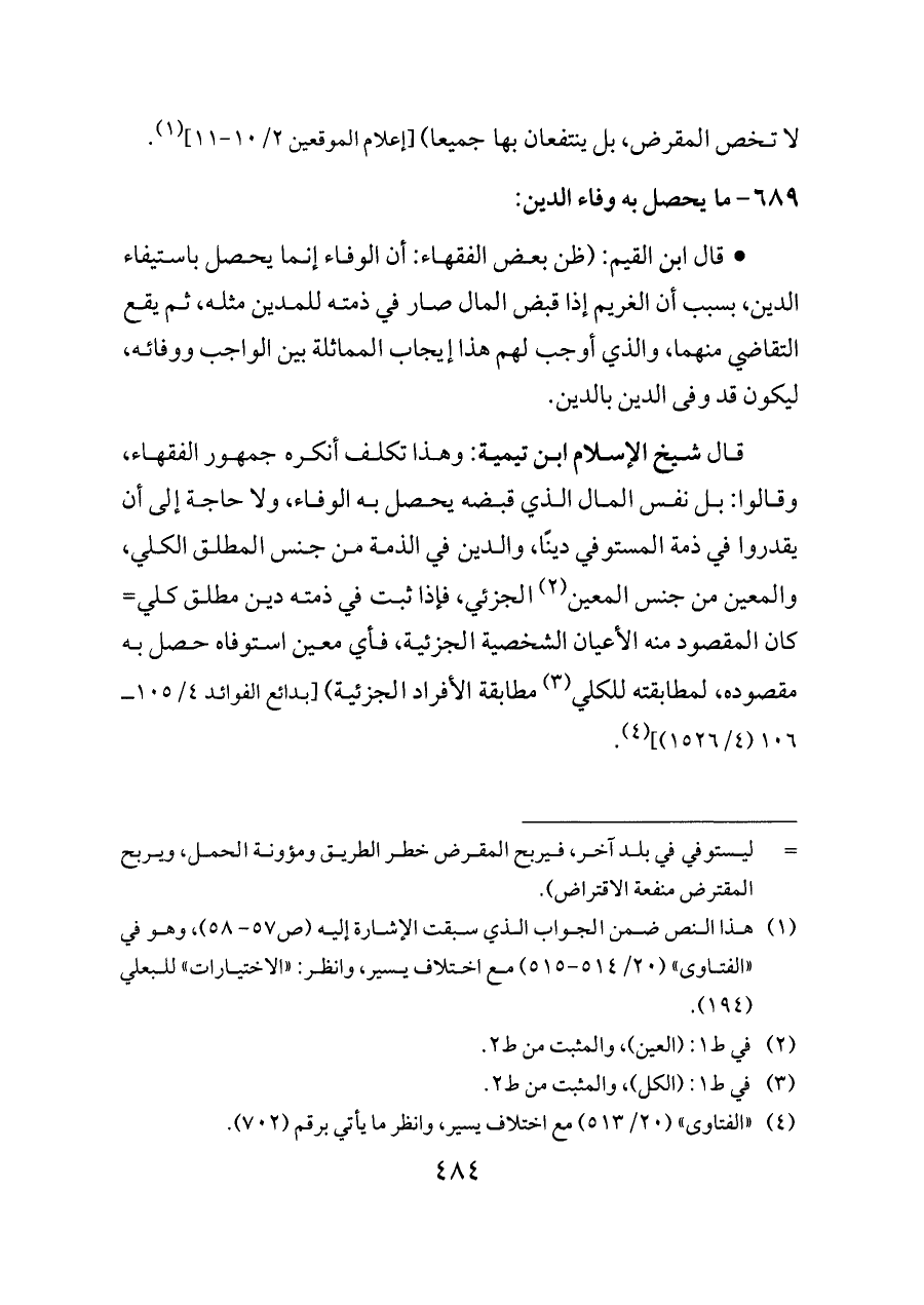 ٦٨٩ - ما يحصل به وفاء الدين:
