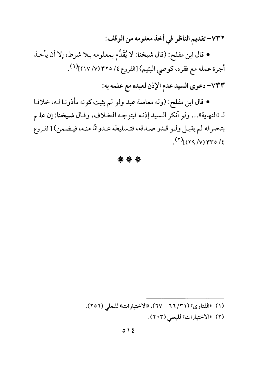 ٧٣٢ - تقديم الناظر في أخذ معلومه من الوقف:
