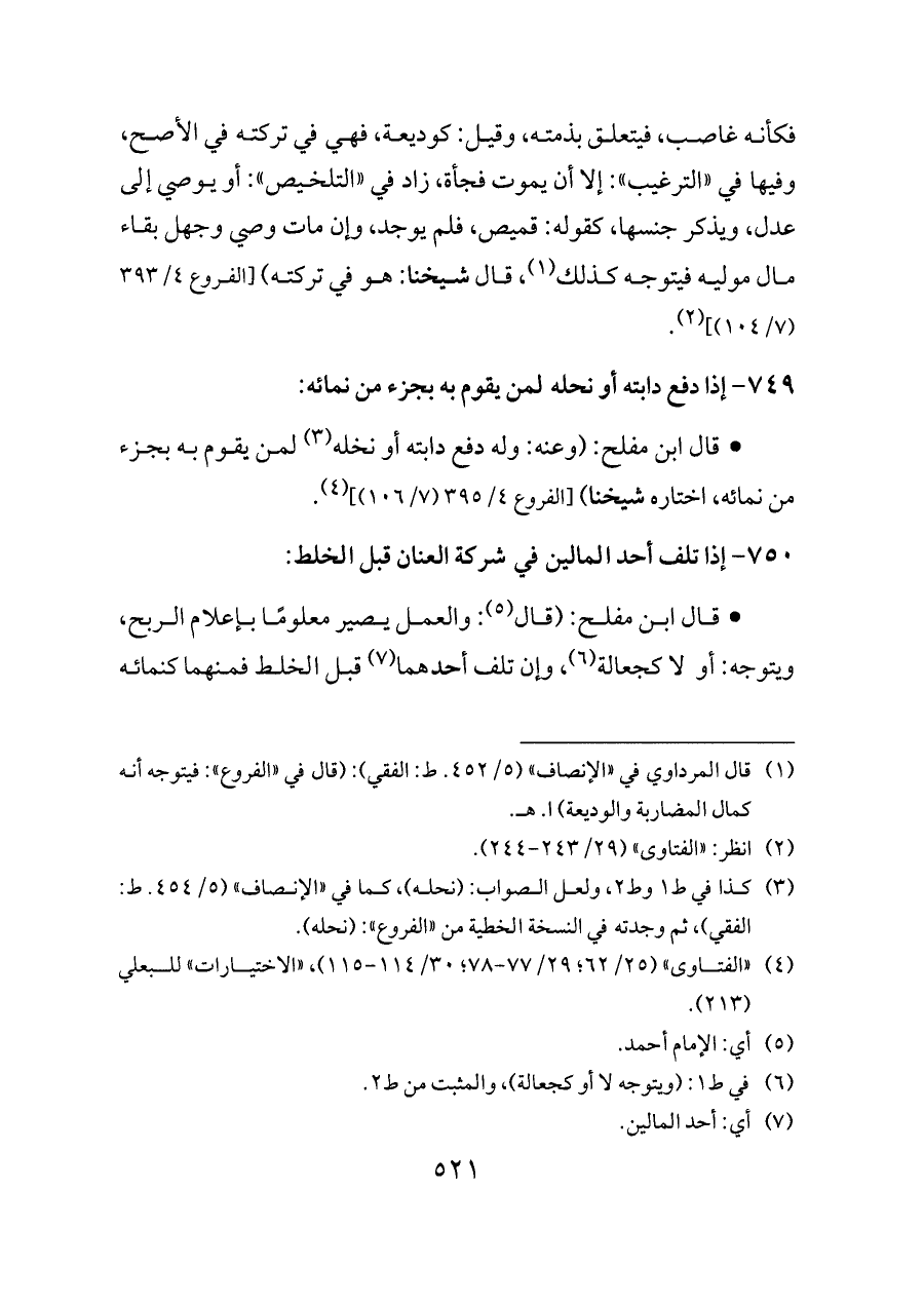 (¬١) قال المرداوي في «الإنصاف» (٥/ ٤٥٢. ط: الفقي): (قال في «الفروع»: فيتوجه أنه كمال المضاربة والوديعة) ا. هـ.