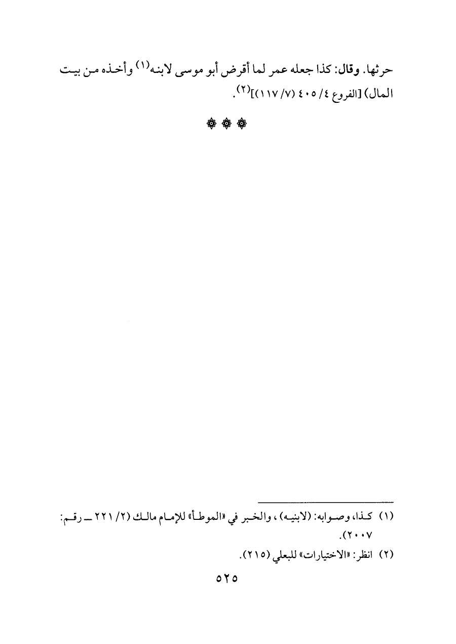 (¬١) كذا, وصوابه: (لابنيه) , والخبر في «الموطأ» للإمام مالك (٢/ ٢٢١ ــ رقم: ٢٠٠٧).