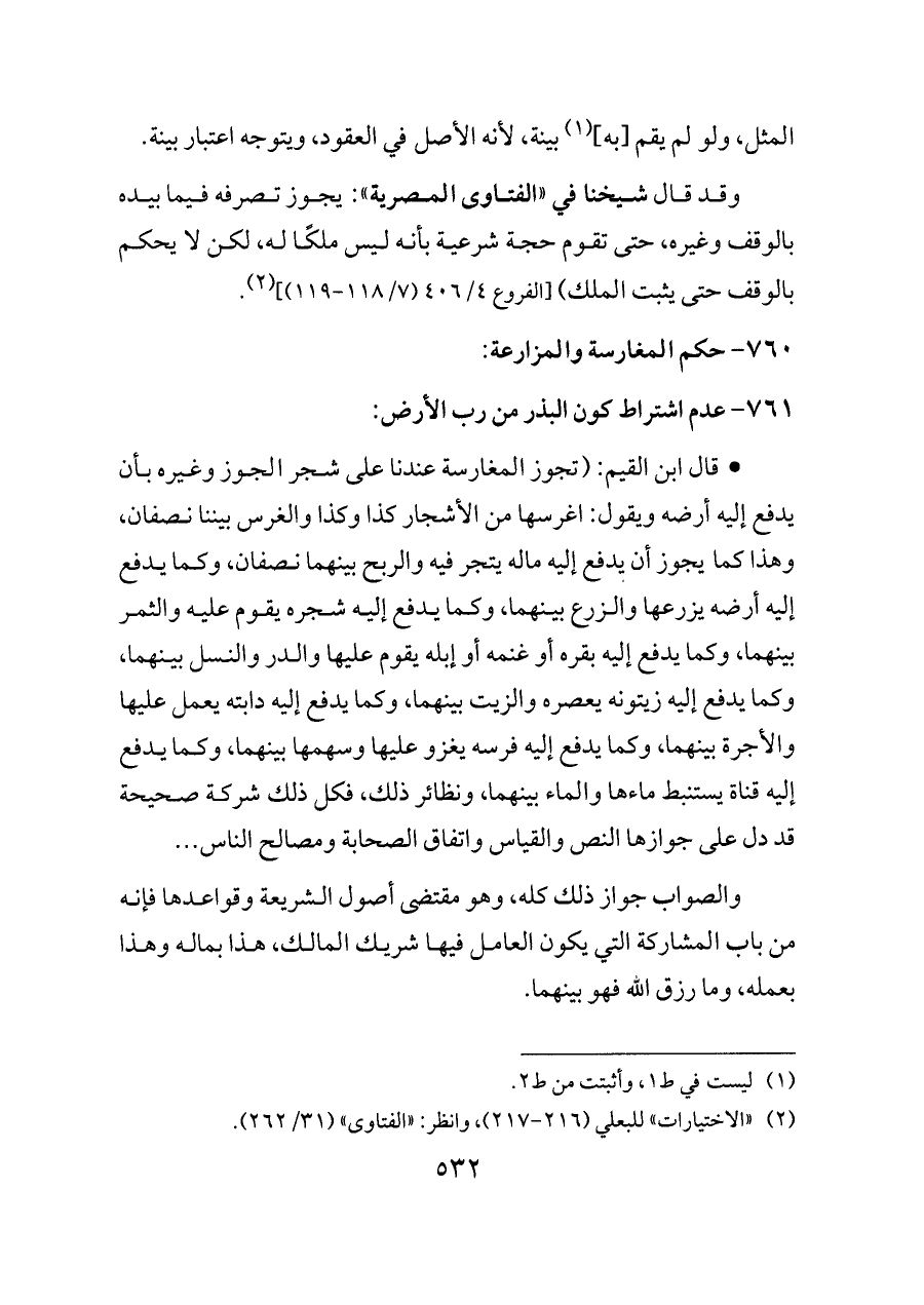 (¬٢) «الاختيارات» للبعلي (٢١٦ - ٢١٧)، وانظر: «الفتاوى» (٣١/ ٢٦٢).