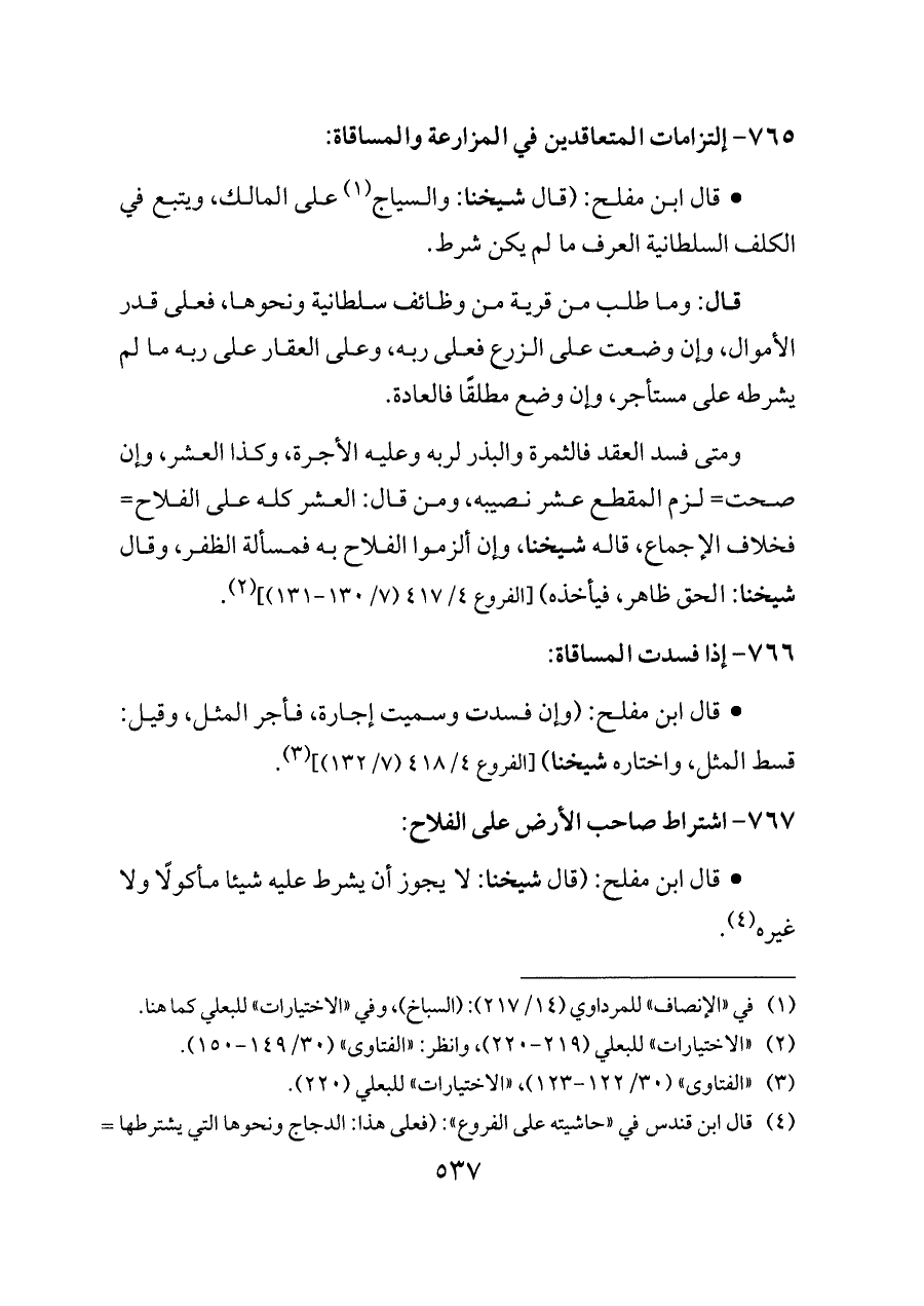 (¬٤) قال ابن قندس في «حاشيته على الفروع»: (فعلى هذا: الدجاج ونحوها التي يشترطها نظار الأوقاف على الفلاحين، على كل فدان كذا وكذا طير= غير جائز).