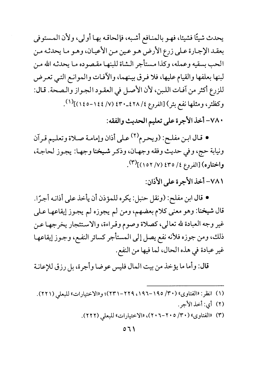٧٨٠ - أخذ الأجرة على تعليم الحديث والفقه: