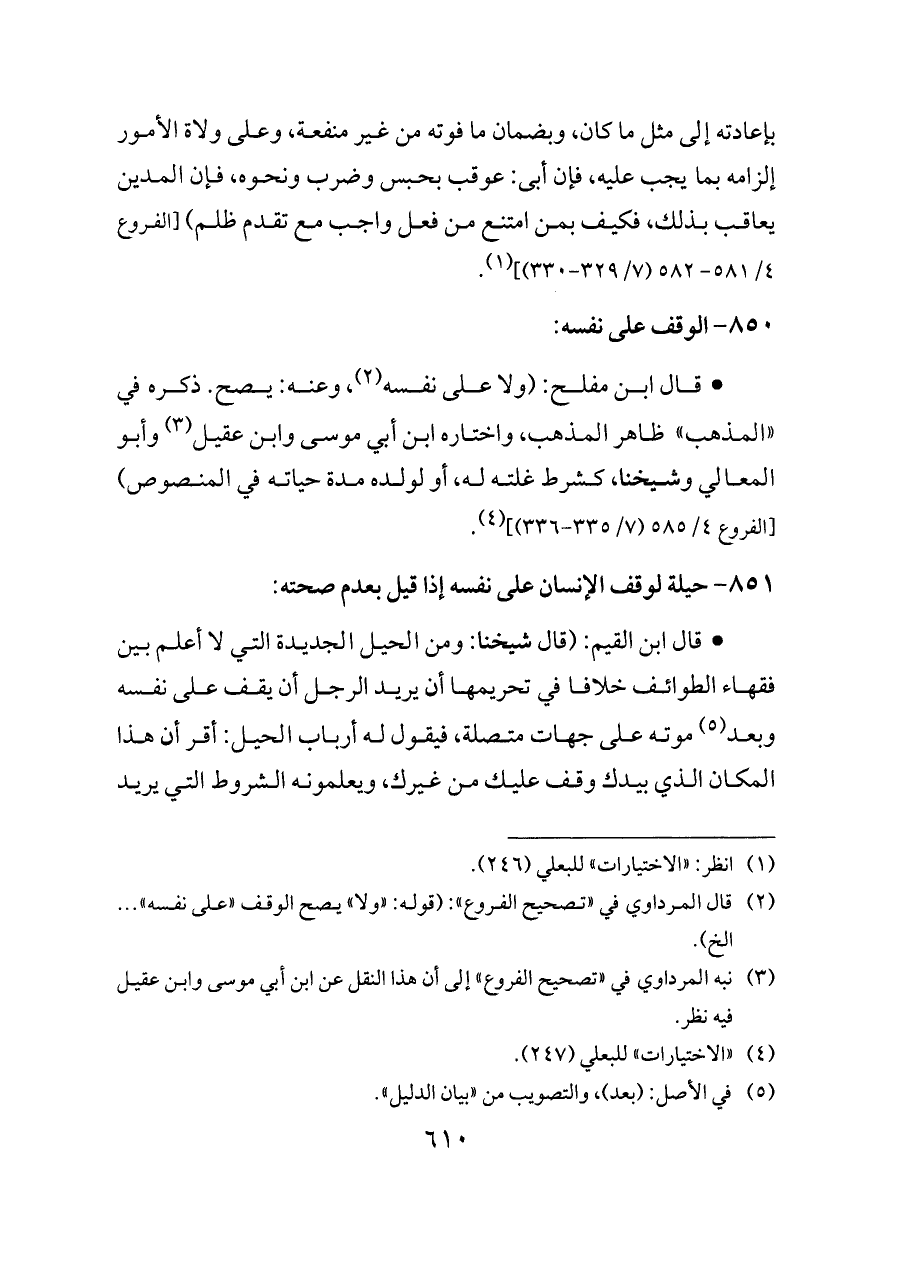 (¬٢) قال المرداوي في «تصحيح الفروع»: (قوله: «ولا» يصح الوقف «على نفسه» ... الخ).