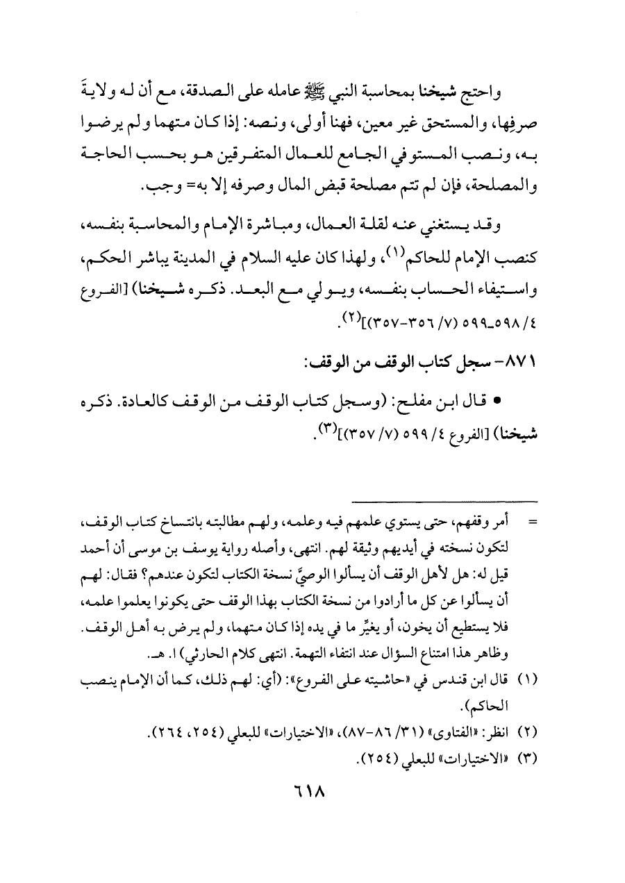 - قال ابن مفلح: (وسجل كتاب الوقف من الوقف كالعادة. ذكره شيخنا) [الفروع ٤/ ٥٩٩ (٧/ ٣٥٧)] (¬٣).