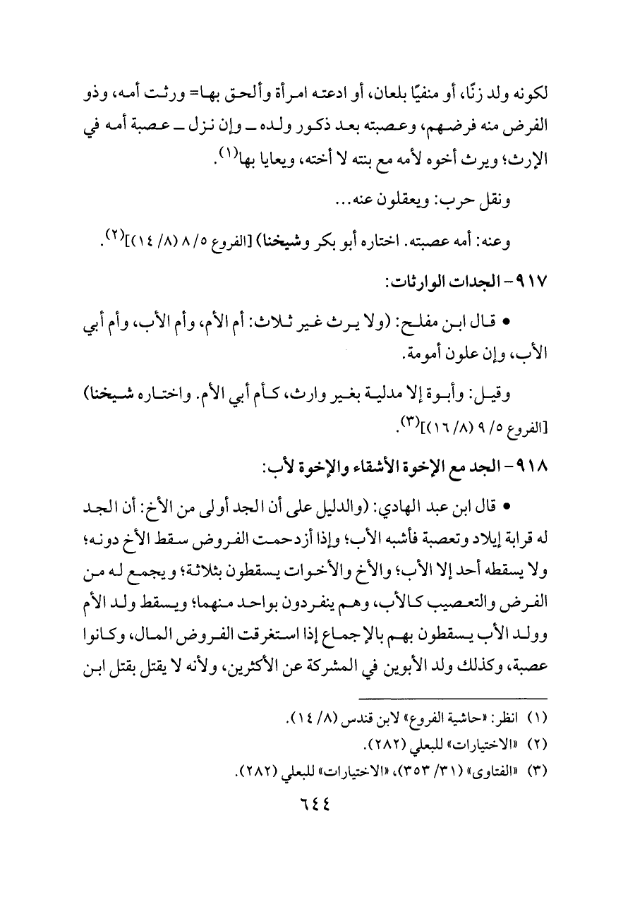 وقيل: وأبوة إلا مدلية بغير وارث، كأم أبي الأم. واختاره شيخنا) [الفروع ٥/ ٩ (٨/ ١٦)] (¬٣).