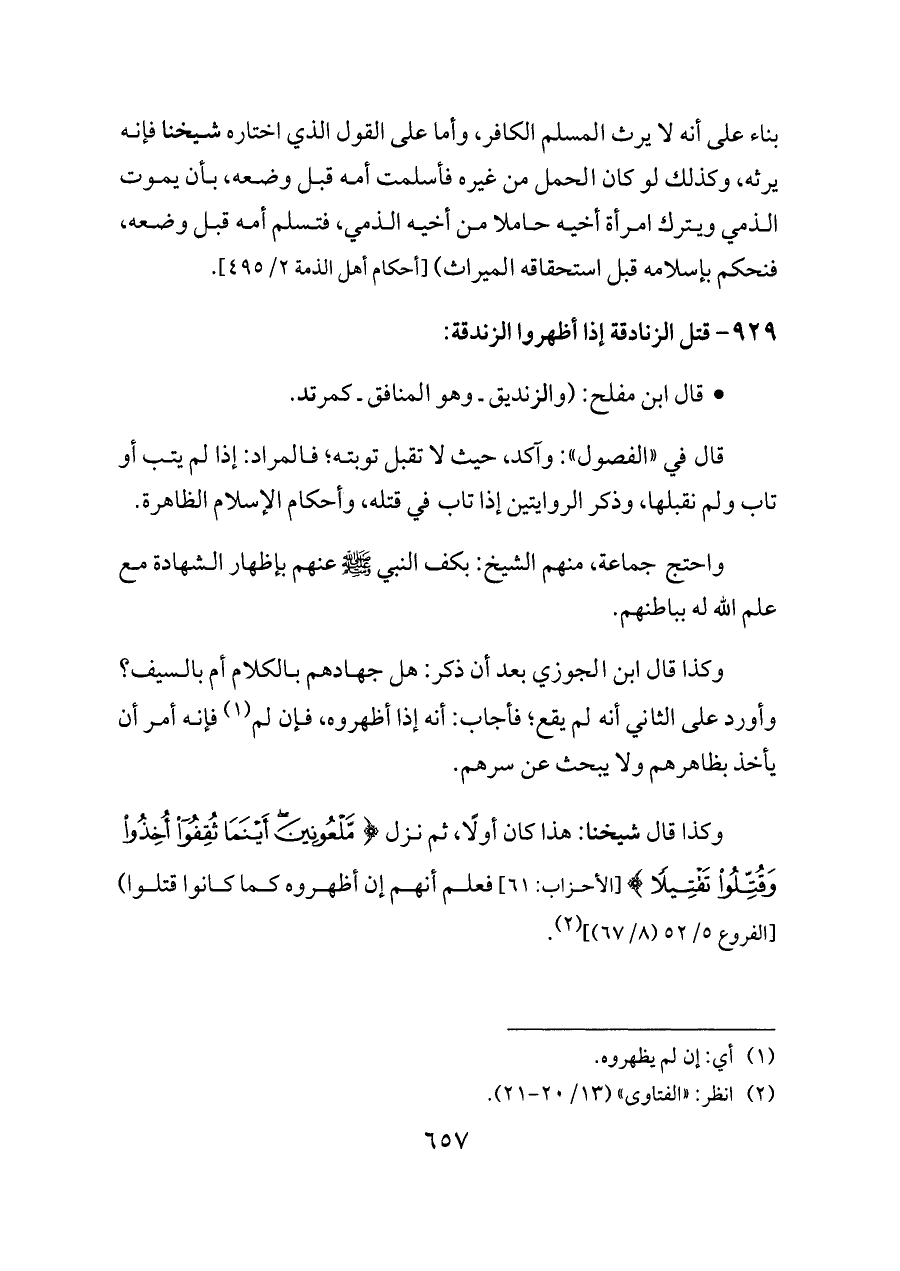 - قال ابن مفلح: (والزنديق ـ وهو المنافق ـ كمرتد.