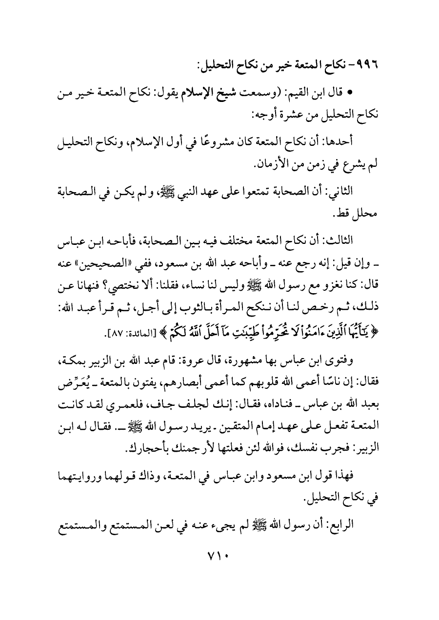 ٩٩٦ - نكاح المتعة خير من نكاح التحليل: