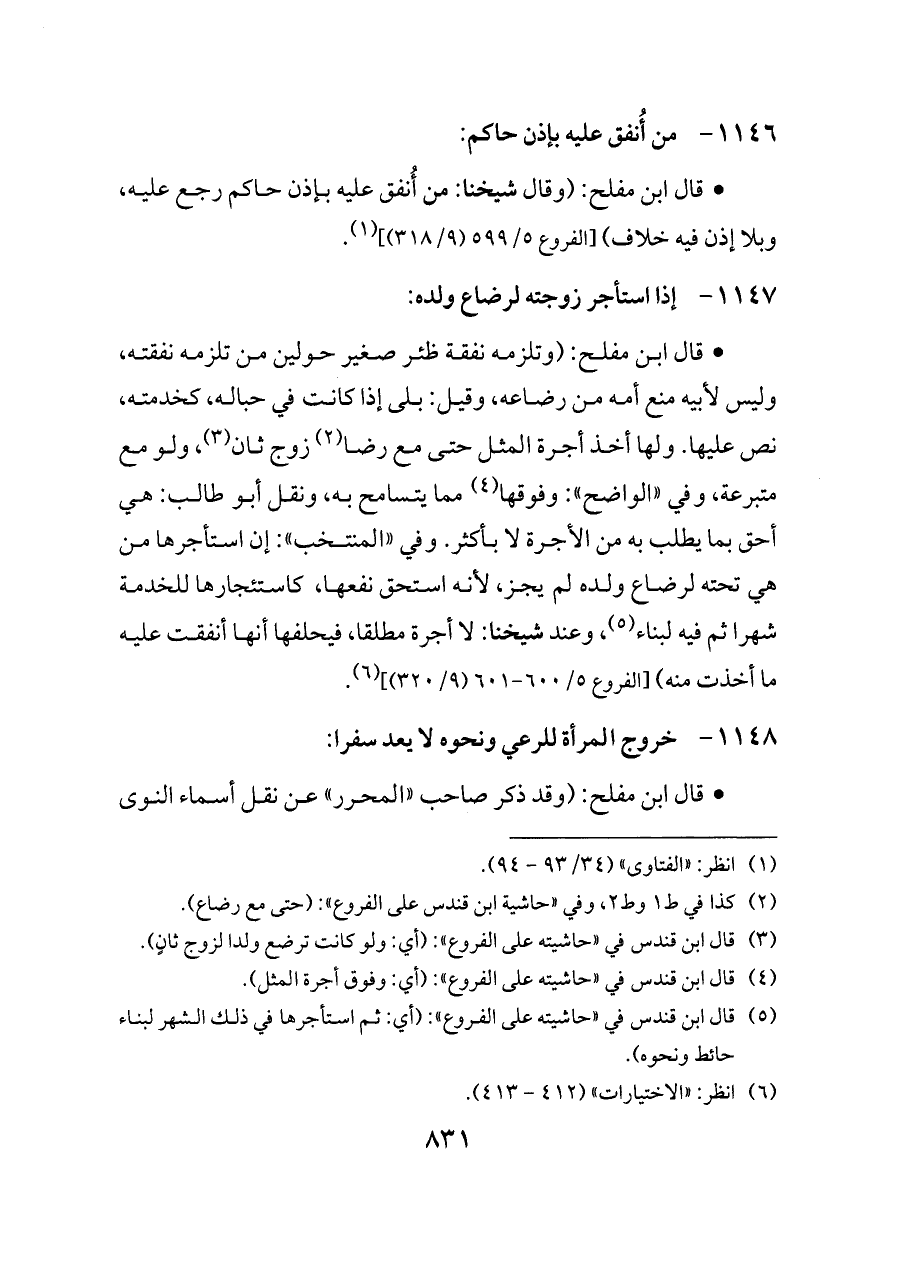 (¬٣) قال ابن قندس في «حاشيته على الفروع»: (أي: ولو كانت ترضع ولدا لزوج ثانٍ).