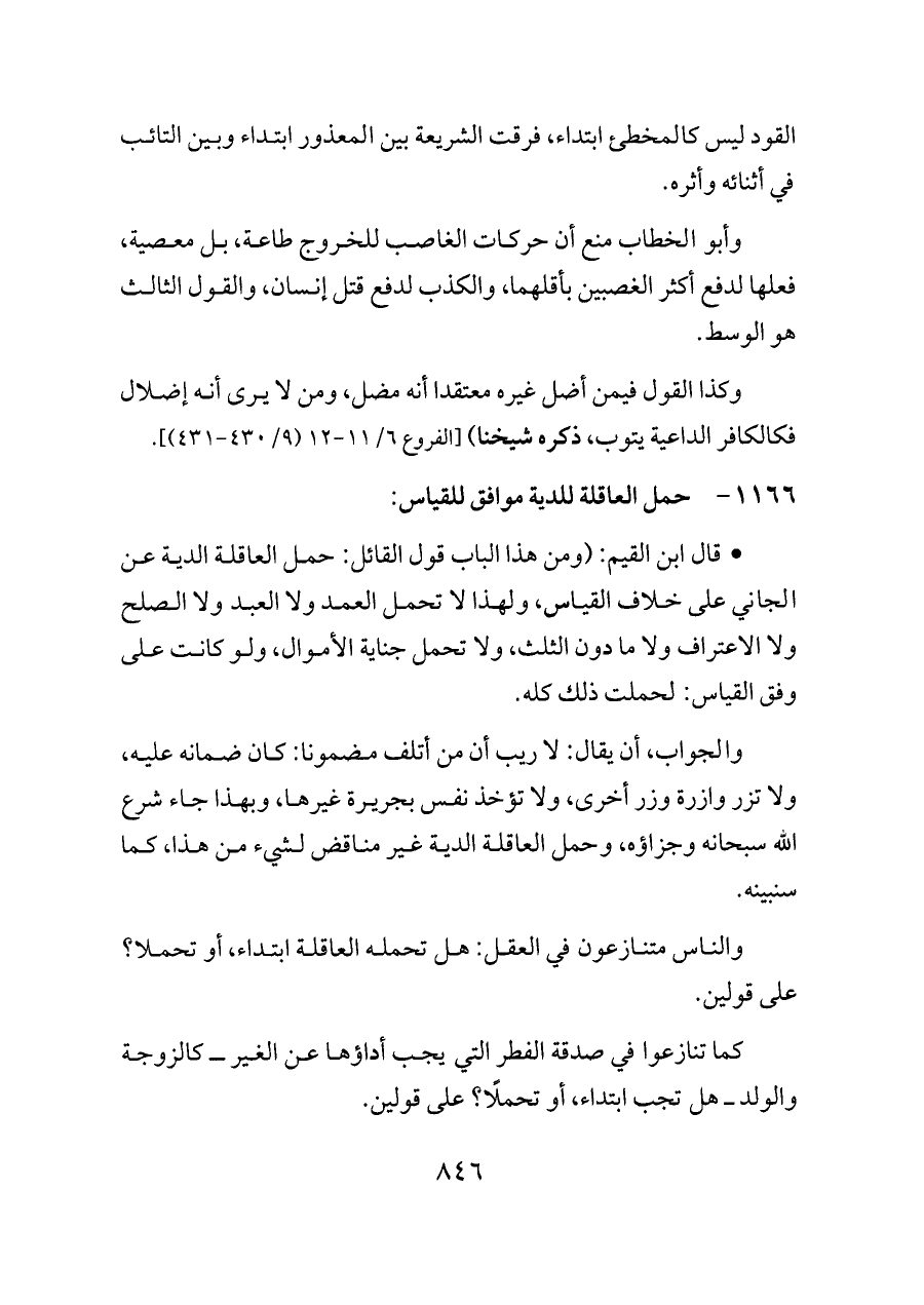 ١١٦٦ - حمل العاقلة للدية موافق للقياس: