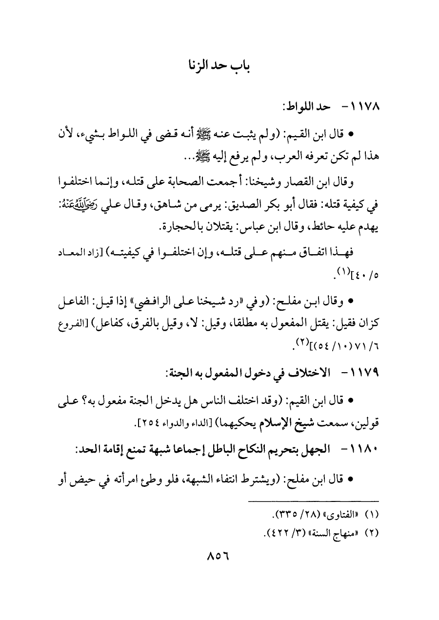 - وقال ابن مفلح: (وفي «رد شيخنا على الرافضي» إذا قيل: الفاعل كزان فقيل: يقتل المفعول به مطلقا، وقيل: لا، وقيل بالفرق، كفاعل) [الفروع ٦/ ٧١ (١٠/ ٥٤)] (¬٢).