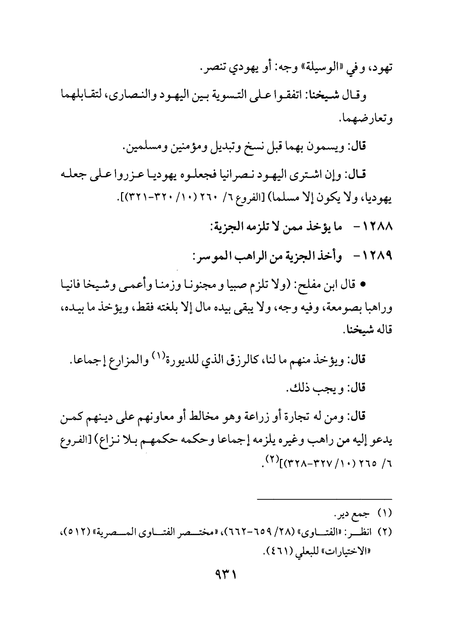 ١٢٨٩ - وأخذ الجزية من الراهب الموسر: