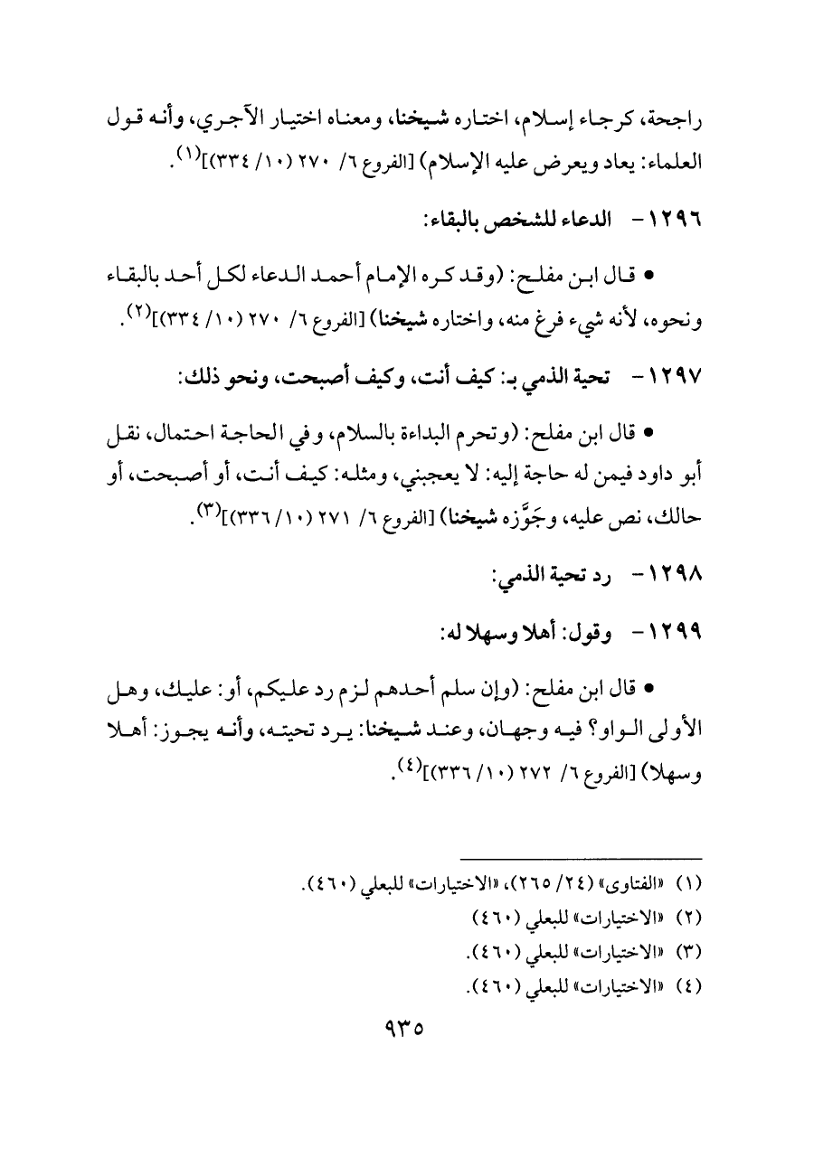 ١٢٩٧ - تحية الذمي بـ: كيف أنت، وكيف أصبحت، ونحو ذلك: