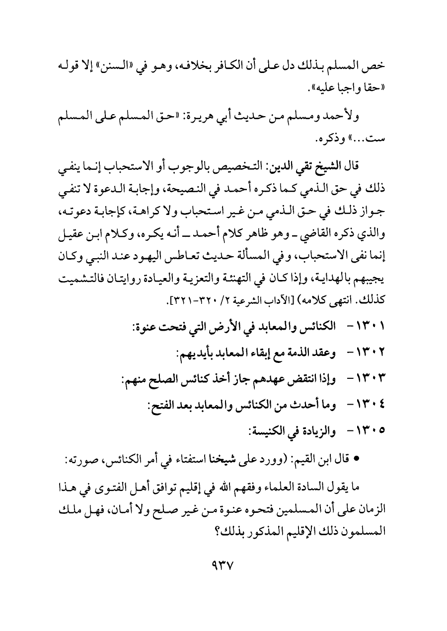 ١٣٠١ - الكنائس والمعابد في الأرض التي فتحت عنوة: