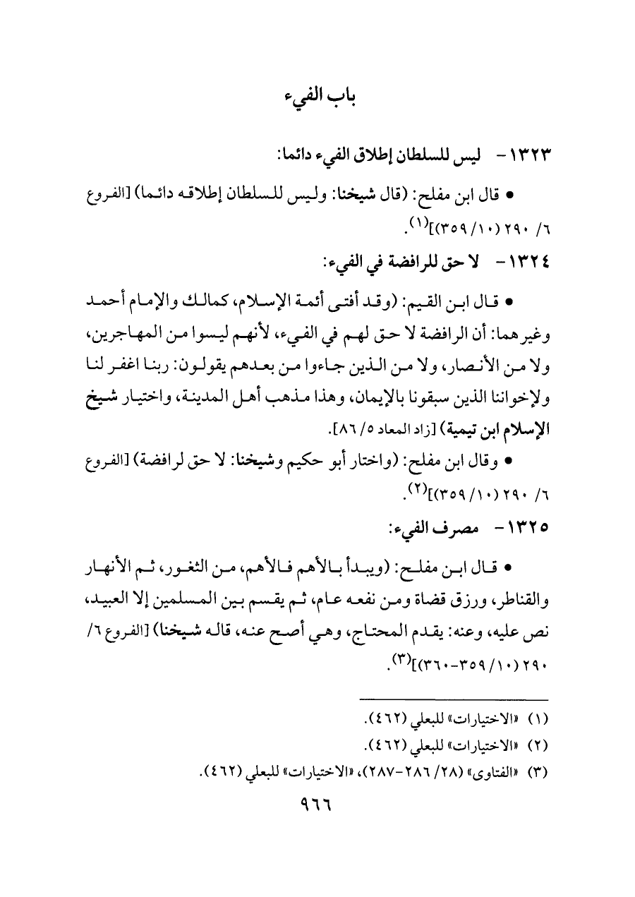 ١٣٢٣ - ليس للسلطان إطلاق الفيء دائما: