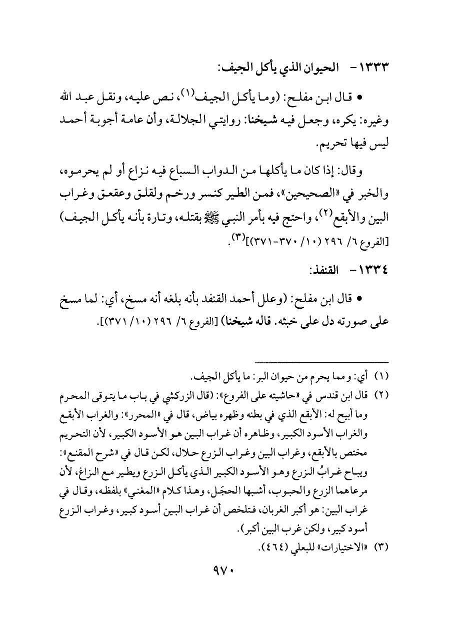 - قال ابن مفلح: (وعلل أحمد القنفد بأنه بلغه أنه مسخ، أي: لما مسخ على صورته دل على خبثه. قاله شيخنا) [الفروع ٦/ ٢٩٦ (١٠/ ٣٧١)].