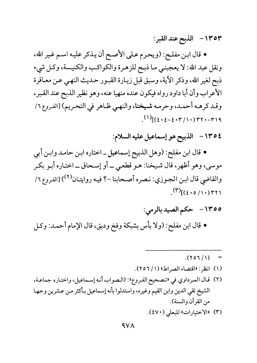 - قال ابن مفلح: (وهل الذبيح إسماعيل ــ اختاره ابن حامد وابن أبي موسى، وهو أظهر، قال شيخنا: هو قطعي ــ أو إسحاق ــ اختاره أبو بكر والقاضي قال ابن الجوزي: نصره أصحابنا -؟ فيه روايتان (¬٢)) [الفروع ٦/ ٣٢١ (١٠/ ٤٠٥)] (¬٣).