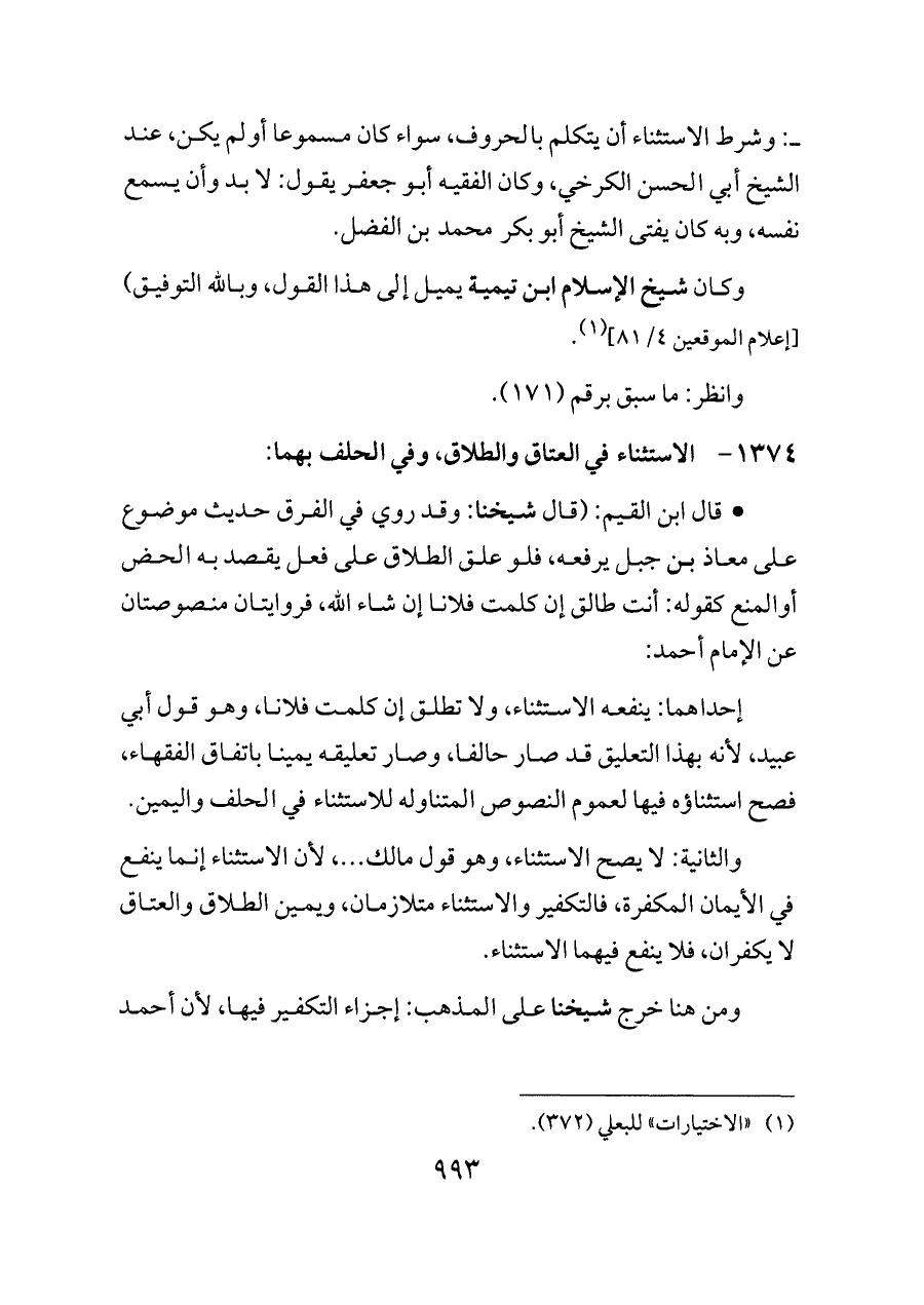 (¬١) «الاختيارات» للبعلي (٣٧٢).