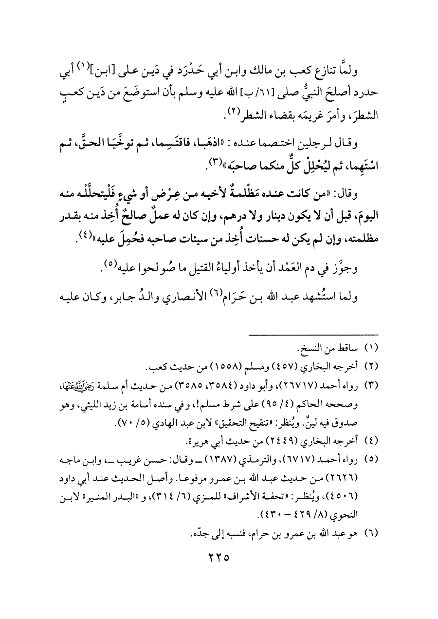 (¬٦) هو عبد الله بن عمرو بن حرام، فنسبه إلى جدّه.