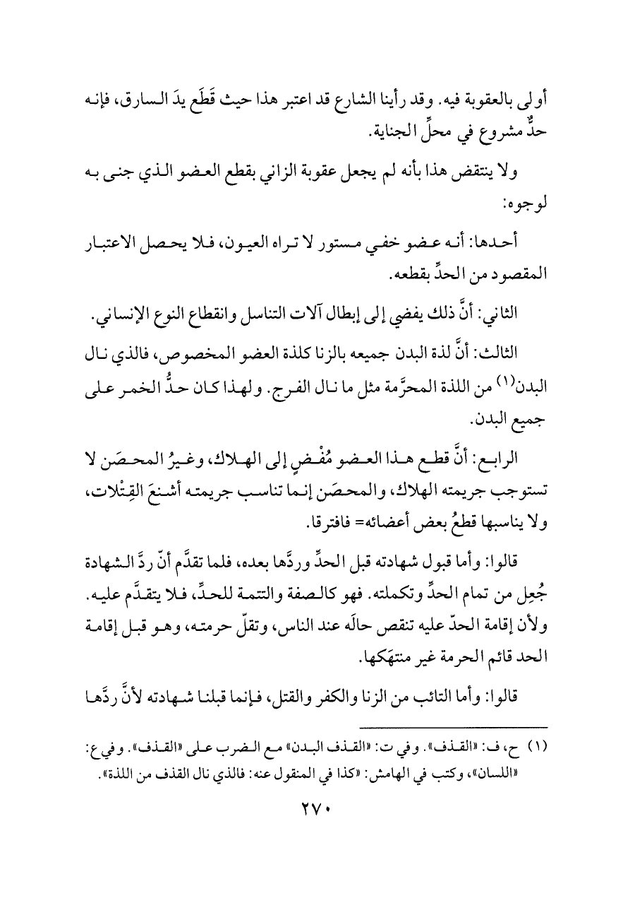 أولى بالعقوبة فيه. وقد رأينا الشارع قد اعتبر هذا حيث قَطَع يدَ السارق، فإنه حدٌّ مشروع في محلِّ الجناية.