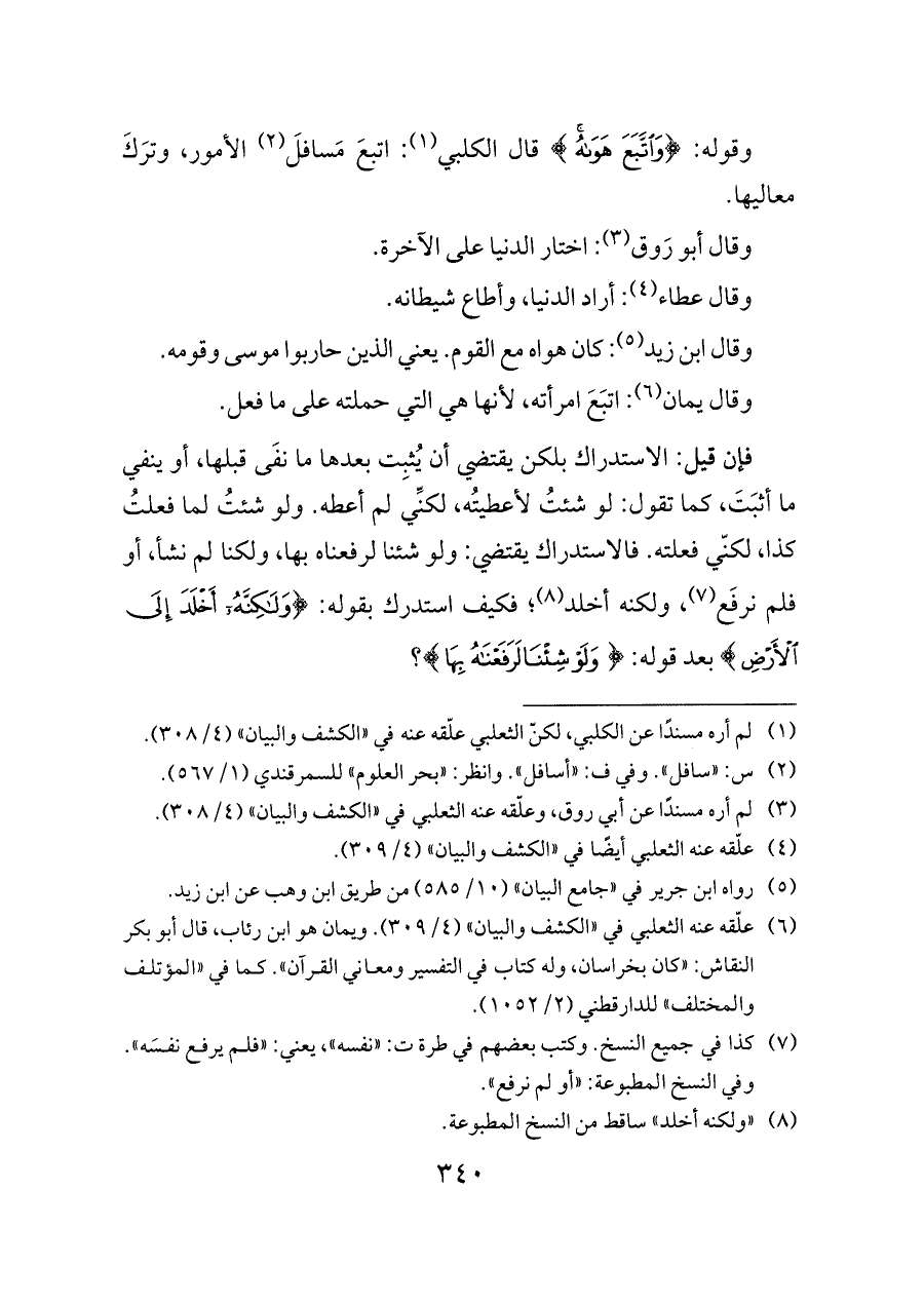 (¬٨) "ولكنه أخلد" ساقط من النسخ المطبوعة.