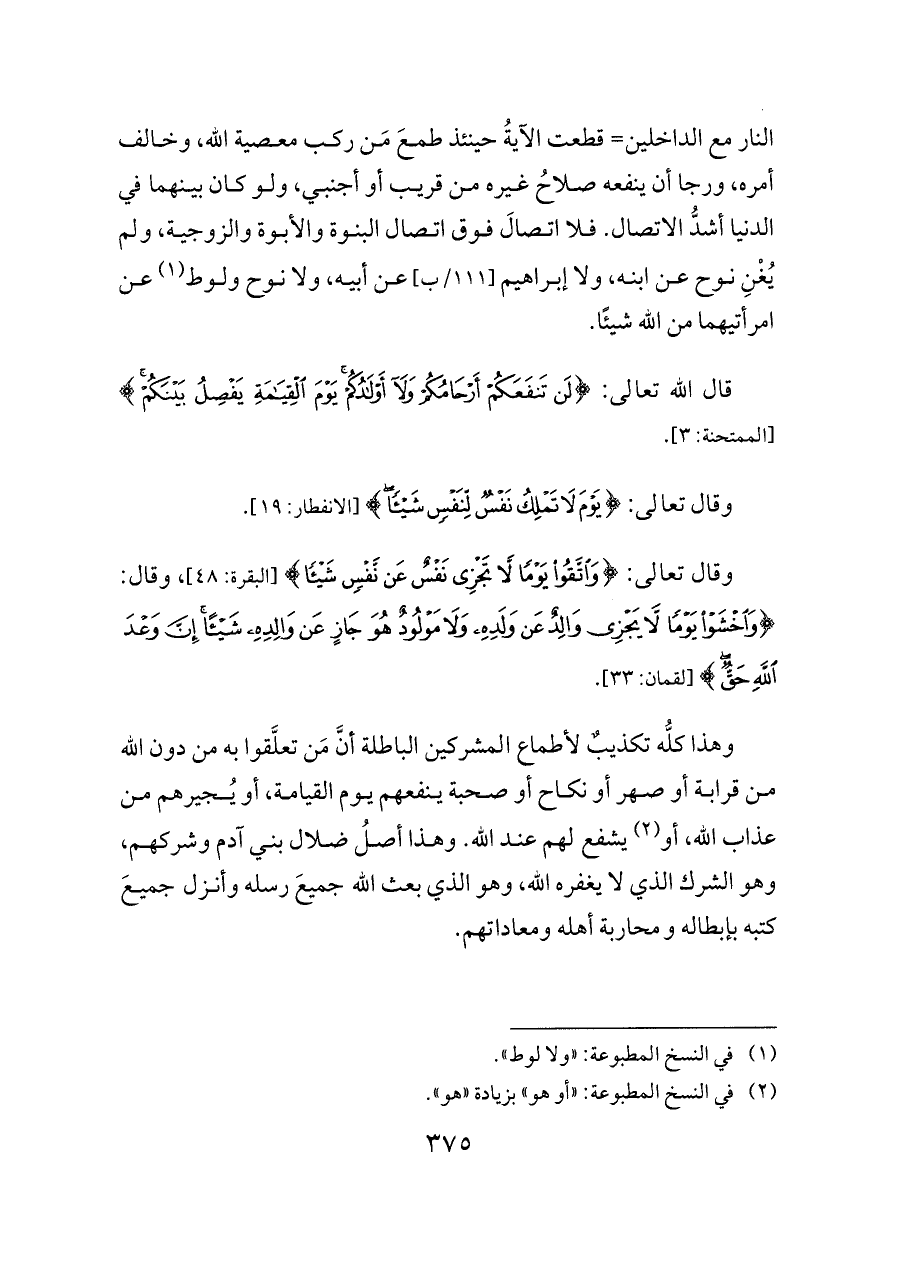 (¬١) في النسخ المطبوعة: "ولا لوط".