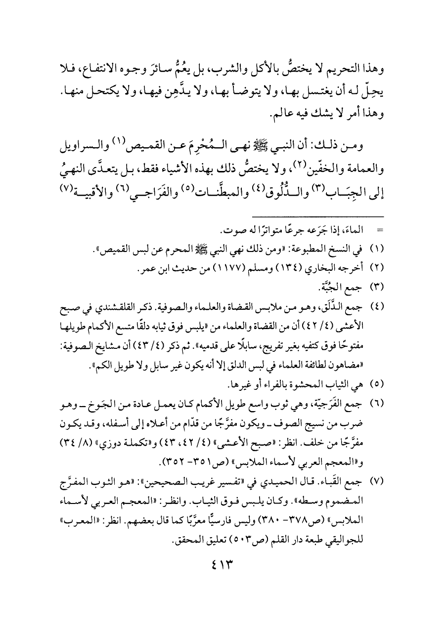 (¬١) في النسخ المطبوعة: "ومن ذلك نهي النبي - صلى الله عليه وسلم - المحرم عن لبس القميص".