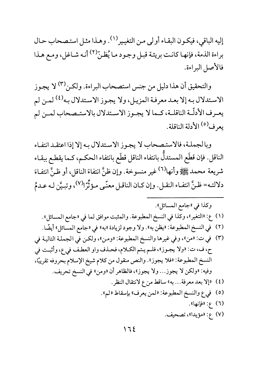 (¬١) ع: «التغير»، وكذا في النسخ المطبوعة. والمثبت موافق لما في «جامع المسائل».