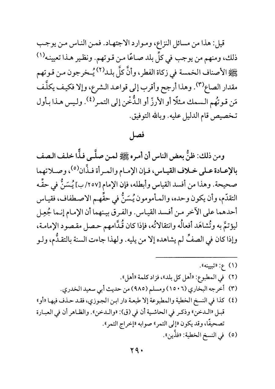 (¬٤) كذا في النسخ الخطية والمطبوعة إلا طبعة دار ابن الجوزي، فقد حذف فيها «أو» قبل «الدخن» وذكر في الحاشية أن في (ق): «والدخن». والظاهر أن في العبارة تصحيفًا، وقد يكون «إلى التمر» صوابه «إخراج التمر».