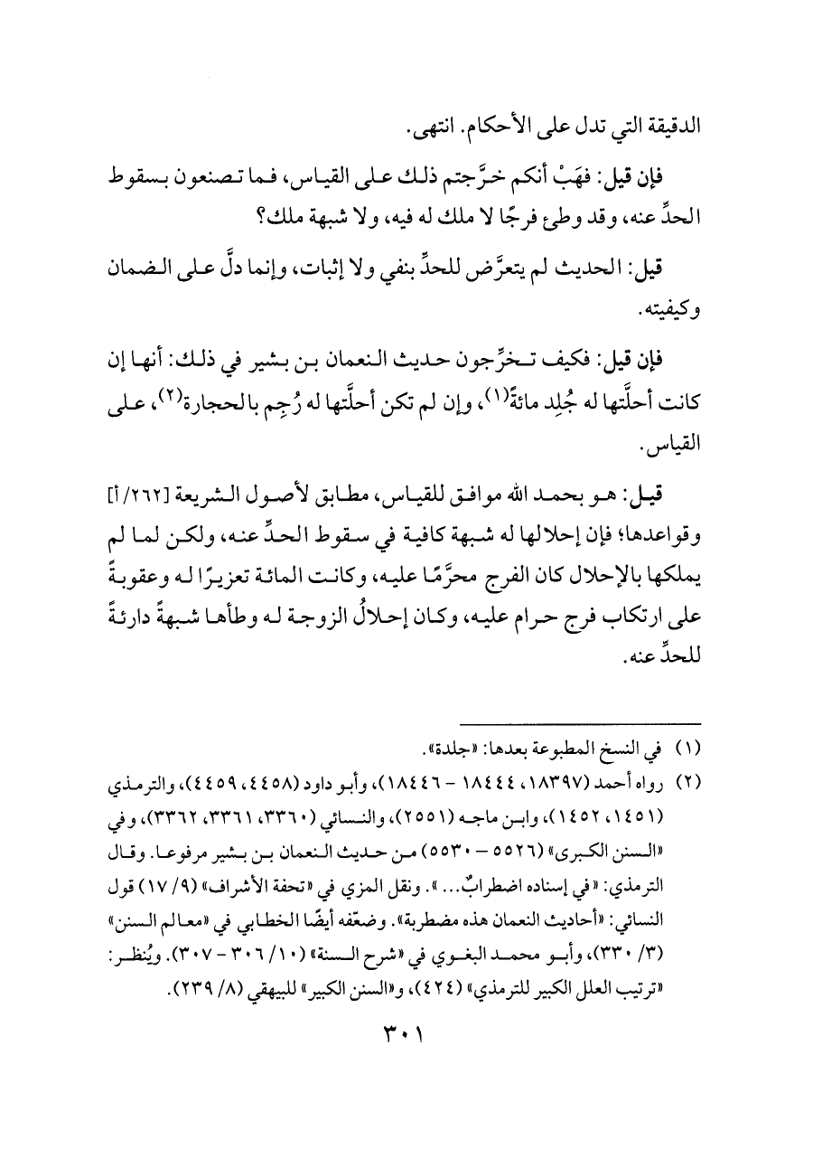 فإن قيل: فكيف تخرِّجون حديث النعمان بن بشير في ذلك: أنها إن كانت أحلَّتها له جُلِد مائةً (¬١)، وإن لم تكن أحلَّتها له رُجِم بالحجارة (¬٢)، على القياس.