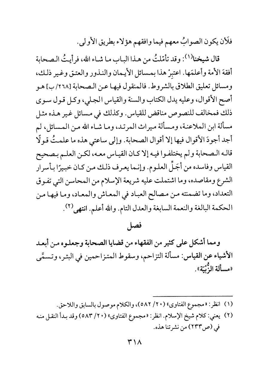 (¬٢) يعني: كلام شيخ الإسلام. انظر: «مجموع الفتاوى» (٢٠/ ٥٨٣) وقد بدأ النقل منه في (ص ٢٣٣) من نشرتنا هذه.
