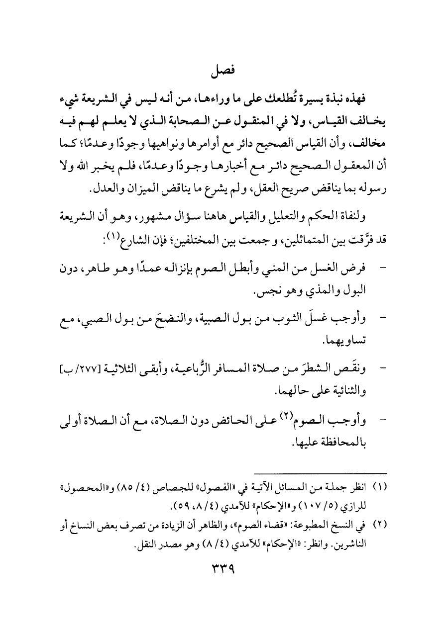 (¬٢) في النسخ المطبوعة: «قضاء الصوم»، والظاهر أن الزيادة من تصرف بعض النساخ أو الناشرين. وانظر: «الإحكام» للآمدي (٤/ ٨) وهو مصدر النقل.