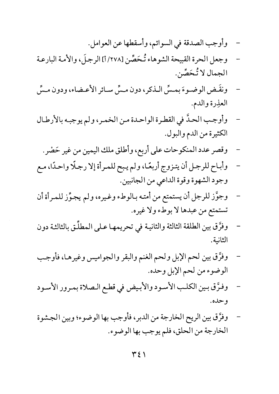 وجعل الحرة القبيحة الشوهاء تُحَصِّن [٢٧٨/أ] الرجلَ، والأمة البارعة الجمال لا تُحَصِّن.