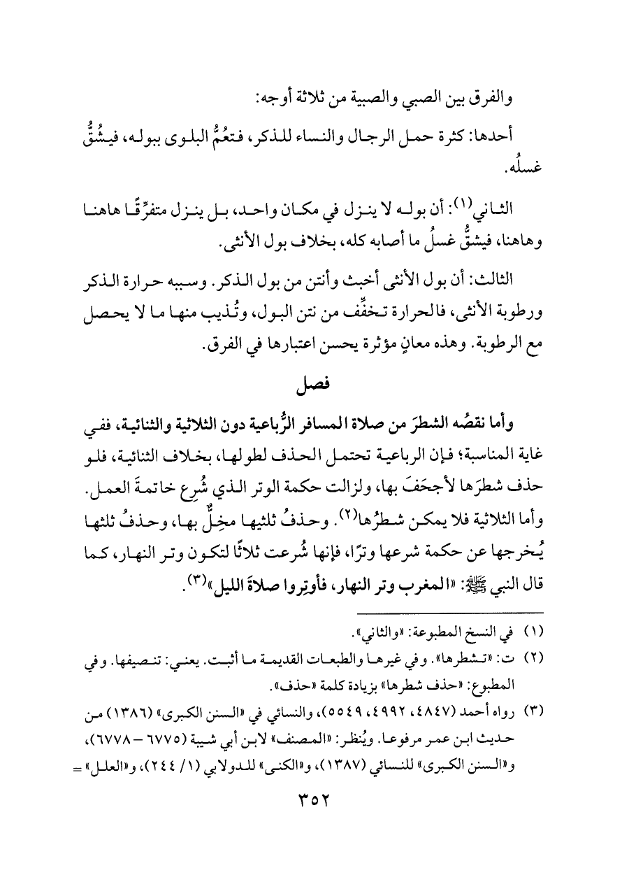 والفرق بين الصبي والصبية من ثلاثة أوجه: