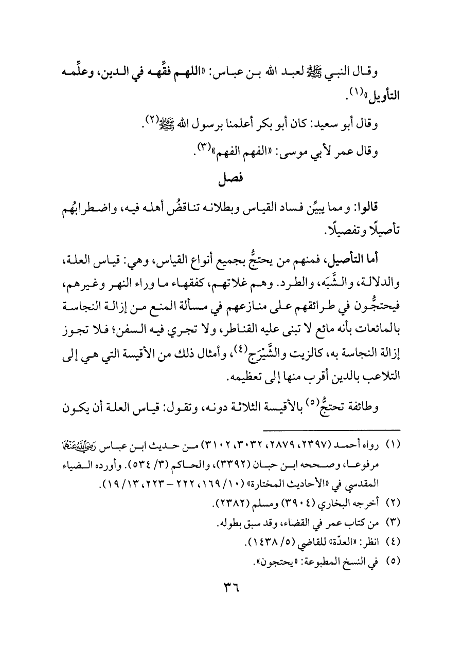 وقال النبي - صلى الله عليه وسلم - لعبد الله بن عباس: «اللهم فقِّهه في الدين، وعلِّمه التأويل» (¬١).