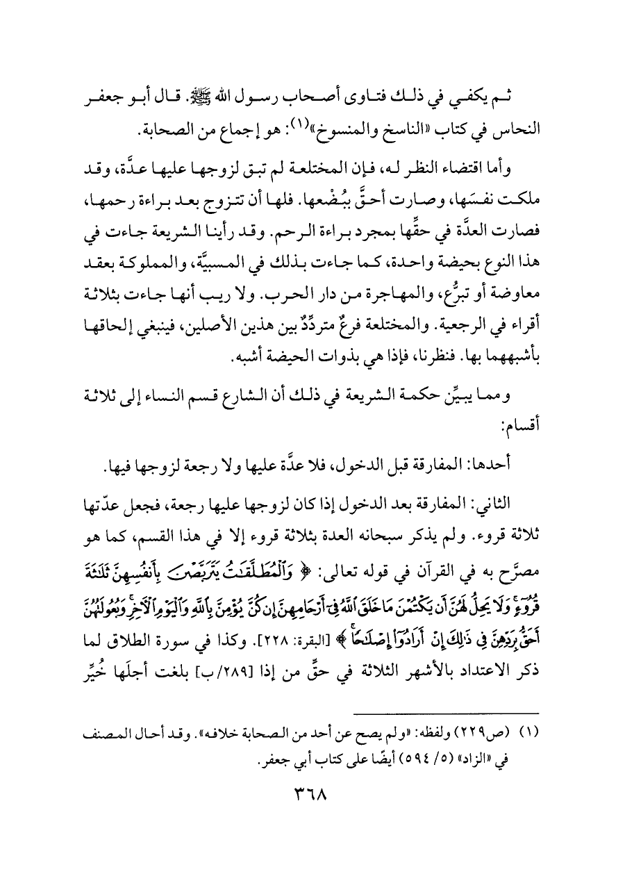 (¬١) (ص ٢٢٩) ولفظه: «ولم يصح عن أحد من الصحابة خلافه». وقد أحال المصنف في «الزاد» (٥/ ٥٩٤) أيضًا على كتاب أبي جعفر.
