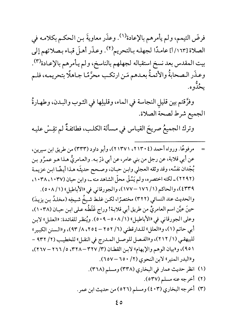 (¬٣) أخرجه البخاري (٤٠٣) ومسلم (٥٢٦) من حديث ابن عمر.