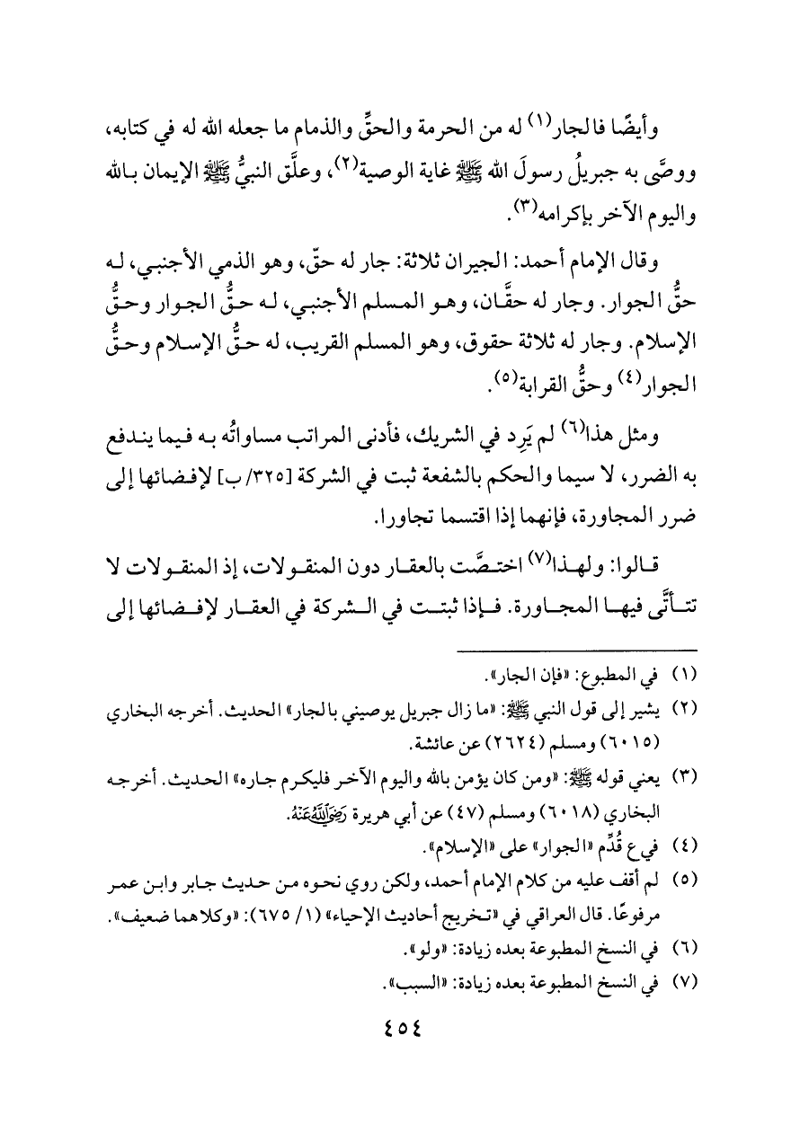 (¬٢) يشير إلى قول النبي - صلى الله عليه وسلم -: «ما زال جبريل يوصيني بالجار» الحديث. أخرجه البخاري (٦٠١٥) ومسلم (٢٦٢٤) عن عائشة.