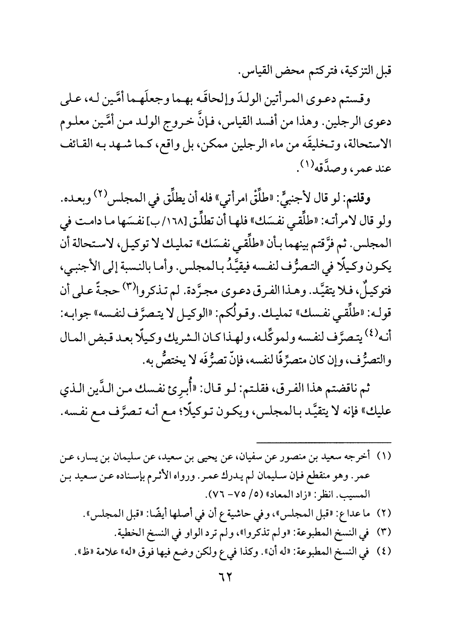 قبل التزكية، فتركتم محض القياس.