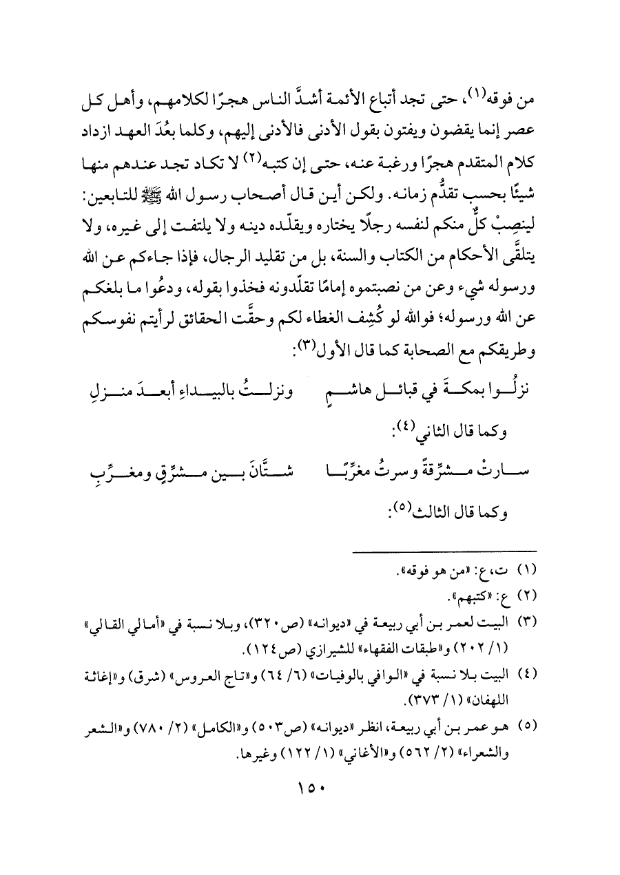 (¬٣) البيت لعمر بن أبي ربيعة في «ديوانه» (ص ٣٢٠)، وبلا نسبة في «أمالي القالي» (١/ ٢٠٢) و «طبقات الفقهاء» للشيرازي (ص ١٢٤).