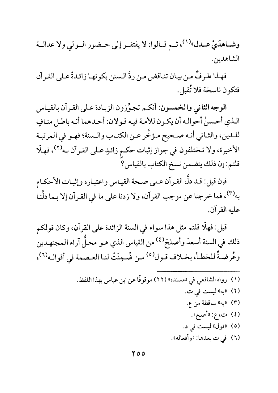 قيل: فهلّا قلتم مثل هذا سواء في السنة الزائدة على القرآن، وكان قولكم ذلك في السنة أسعدَ وأصلحَ (¬٤) من القياس الذي هو محلُّ آراء المجتهدين وعُرضةٌ للخطأ، بخلاف قول (¬٥) من ضُمِنَتْ لنا العصمة في أقواله (¬٦)،