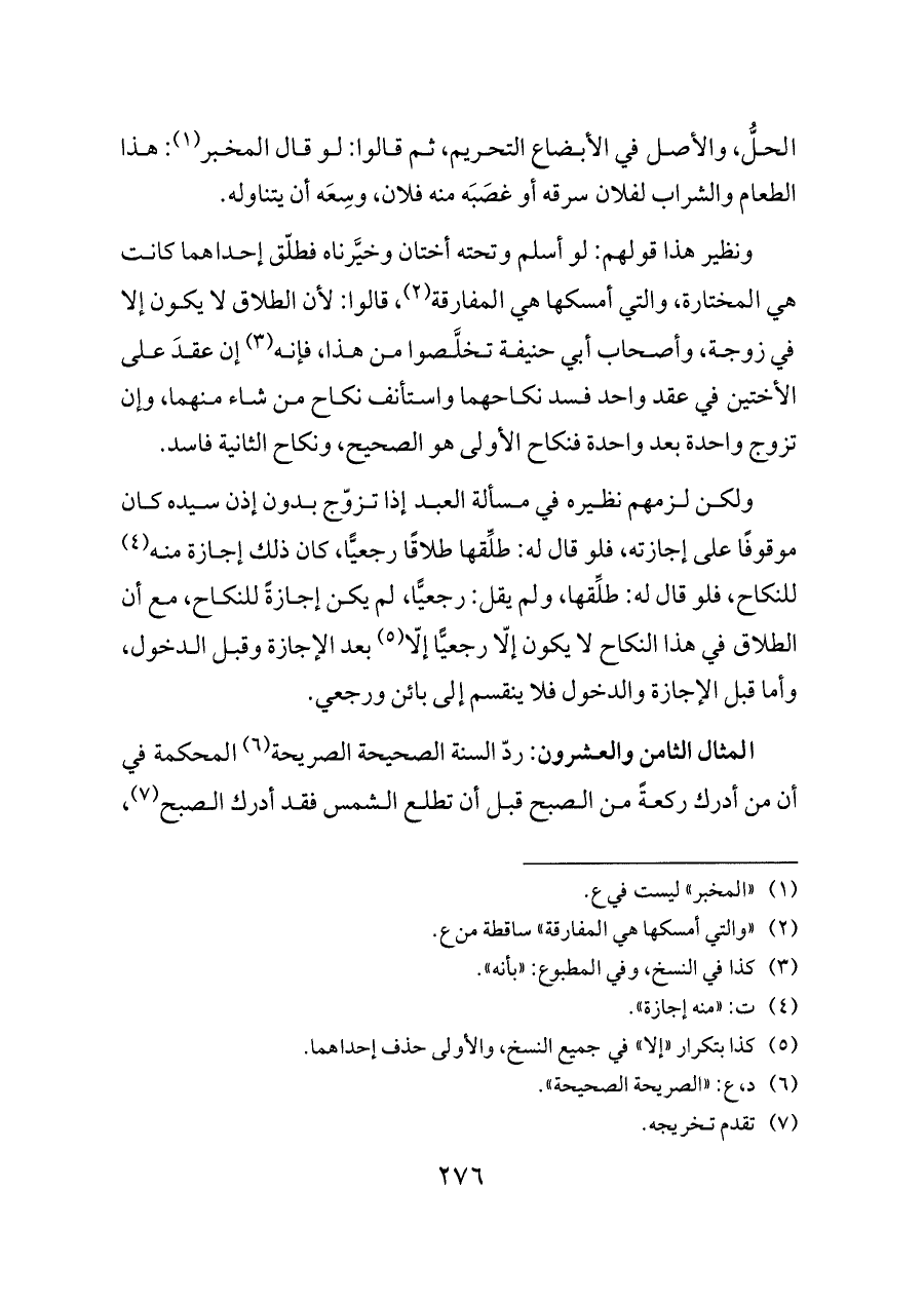 (¬٦) د، ع: «الصريحة الصحيحة».