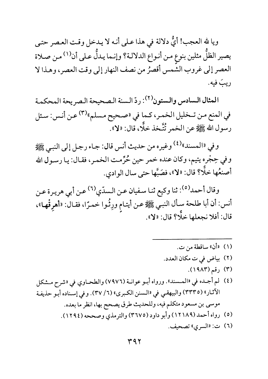 المثال السادس والستون (¬٢): ردّ السنة الصحيحة الصريحة المحكمة في المنع من تخليل الخمر، كما في «صحيح مسلم» (¬٣) عن أنس: سئل رسول الله - صلى الله عليه وسلم - عن الخمر تُتَّخذ خلًّا، قال: «لا».